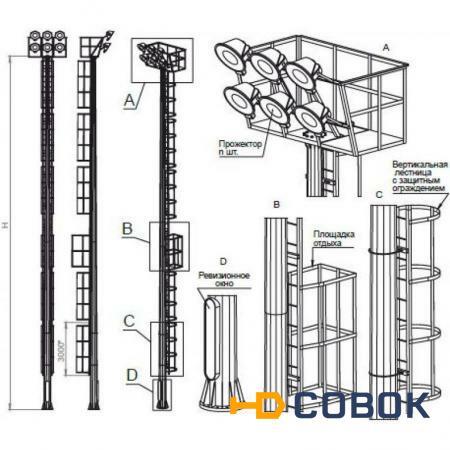 Прожекторные мачты освещения ВС со стационарной короной. Изготовление 25-35 дней. Доставка.