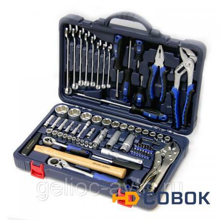10 торцевых головок 1/4": 4, 5, 6, 7, 8, 9, 10, 11, 12, 13 мм реверсивная трещотка 1/4" с быстрым сбросом 160 мм 5 длинных торцевых головок 1/4": 5, 6, 7, 8, 9 мм удлинитель 1/4" 75 мм отвертка - битодержатель 1/4" карданный шарнир 1/4" адаптер для бит 1/4" 4 плоские биты 1/4": 3, 4, 5, 6 мм 7 бит TORX 1/4": T10, T15, T20, T25, T27, T30, T40 3 биты PHILLIPS 1/4": PH1, PH2, PH3 13 торцевых головок 1/2" шестигранных: 10, 11, 12, 13, 14, 15, 17, 19, 22, 24, 27, 30, 32 мм реверсивная трещотка 1/2" с быстрым сбросом удлинитель 1/2" 125 мм карданный шарнир 1/2" 8 комбинированных ключей: 10, 11, 12, 13, 14, 15, 17, 19 мм струбцина 250 мм клещи переставные 250 мм пассатижи 180 мм 3 шестигранных ключа: 1.5, 2, 3 мм свечные головки 16 и 21 мм молоток 300 гр. 5 отверток: 8x200 мм (PZ2), 6x100 мм (-), 6x40 мм (-), 6x100 мм (+), 6x40 мм (+)