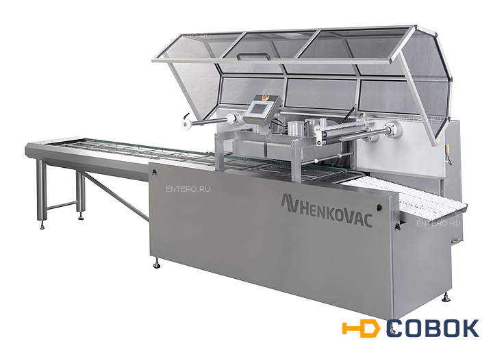 Описание Запайщик лотков Henkovac TPS 1000 используется на предприятиях пищевой промышленности и торговли для автоматической вакуумной упаковки контейнеров с готовыми продуктами или полуфабрикатами и запайки верхней открытой части контейнера пленкой с последующим обрезанием. Контейнер с продуктом устанавливается на подающий транспортер вручную. После окончания цикла упакованный контейнер выходит на отводящий транспортер. Корпус выполнен из нержавеющей стали. Автоматический податчик контейнеров устанавливается отдельно. Особенности: Функция газонаполнения - процесс наполнения контейнера с продуктом инертным газом или смесью инертных газов для увеличения сроков годности продукта или предотвращения деформации продукта в вакуумной упаковке Полный автоматический контроль каждого этапа упаковывания Вакуумный насос Busch (Германия) Легкая замена формы матрицы Возможность использования различных видов подложек Простота эксплуатации Дополнительные характеристики: Макс. размер контейнера: 350х260х120 мм Производительность: от 4 до 10 цикл/мин. Время цикла: от 10 до 15 сек. Производительность насоса: 100 м3/ч Атмосферное давление: 6 бар Макс. ширина верхней пленки: 450 мм Макс. диаметр рулона: 440 мм Внутренний диаметр втулки рулона: 76 мм Опции (заказываются отдельно): Моторизированный отводящий конвейер Увеличение подающего конвейера на 1 м Датчик фотометки Отсекать влаги (фильтр) Кислородозащищенный вакуумный насос Busch производительностью 100 м3/ч Внимание! На фото представлена модель TPS 2000.