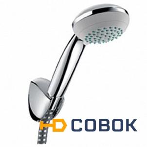 Hansgrohe Crometta 85 Vario/Porter'C 27559000 Душевой гарнитур 1,60 м, ½’, тип струи: обычная струя, струя Vario, переключение типов струи с помощью вращающегося душевого диска, максимальный расход воды (при 3 бар): 17 л/мин. Состоит из: Ручной душ Crometta 85 Variojet,½’ (# 28562000), Держатель Porter’C (# 27521000), Шланг Metaflex 1,60 м, ½’ (# 28266000).