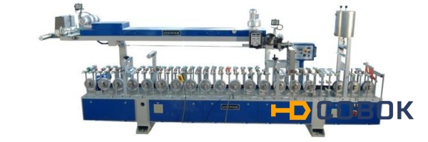 На станке возможна ламинирование профилей из ПВХ, МДФ, дерева и алюминия пленками из ПВХ, бумаги и натурального шпона со скоростью до 30 м/с.
