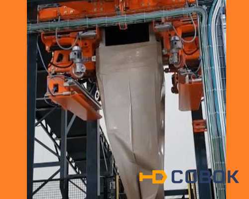 Линия упаковки торфа и удобрений в мешки биг бейл (big bale) представляет собой автоматический пресс сложной конструкции, включающий группу конвейеров для подачи торфа в камеру прессования с механизмом выдвижения малого конвейера насыпки, механизм размотки рукавной упаковочной пленки в рулоне, магазин подачи пустых деревянных паллет, систему раскрытия и формирования мешка биг бэйл, узел подачи торфа под пресс и отводящий рольганг для готовых паллет с мешками. На вход линии по ленточному конвейеру подается разрыхленный торф или торфо-грунтовая смесь, на выходе машины готовые мешки биг бейл объемом от 2,5 до 6 м3 со степенью сжатия 2,5 :1 . Производительность упаковки торфа зависит от количества циклов прессования в мешке и может достигать 12-16 мешков big bale в час. На линии работает один оператор, осуществляющий общий контроль параметров оборудования и смену упаковочных материалов. Цикл фасовки торфа в мешки биг бейл автоматический, без участия оператора. Мешок формируется также автоматически из рулона рукавной пленки. Высота готового биг бэйла от 1,5 до 2,3 метра