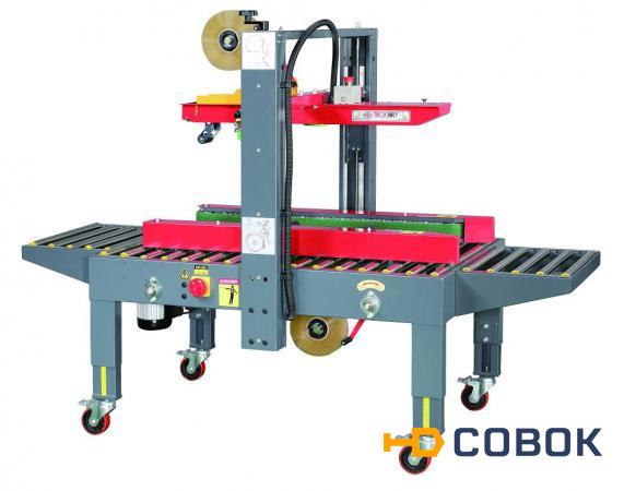 Оператор закрывает верхние клапаны короба, машина заклеивает короб скотчем сверху и снизу.