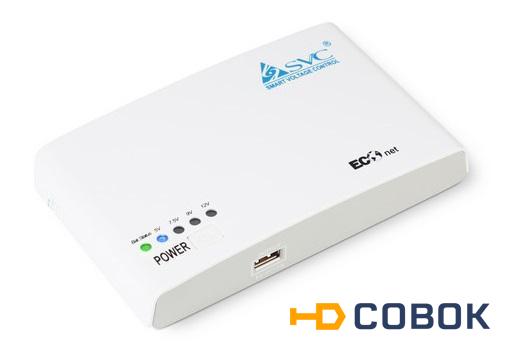 Источник бесперебойного питания SVC ECO NET 412. Мощность 12 Вт. Напряжение 5В/7,5В/9В/12В (регулятор на корпусе). Батарея 8800 mAH, USB-порт. Ток выхода 1А. Время переключения режимов 0 мс. Белый. ИБП SVC ECO NET 412. Устройство, позволяющее подключенному оборудованию некоторое время работать от встроенных батарей, такому, как камеры наблюдения, модемы, планшеты, телефоны и многому другому. Также может использоваться в качестве портативного зарядного устройства, благодаря встроенным батареям и наличию USB-порта.