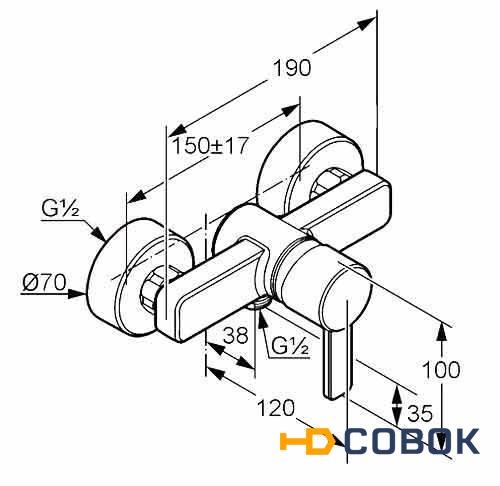 KLUDI ZENTA 388708675 смеситель для душа, черный/хром, литой рычаг, настенный монтаж, класс расхода воды А, керамический картридж с ограничителем горячей воды, защищен от обратного тока воды, отвод для душа G 1/2 , s-образные эксцентрики, без душевого гарнитура.