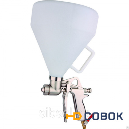 Хоппер пистолет Пистолет текстурный "Хоппер RK-01" с воздушным краном, обеспечивающим возможность регулировки давления. Пистолет "Хоппер RK-01" используется для нанесения штукатурки, декоративной штукатурки, жидких обоев (отдельных разновидностей) густых, фактурных красок, лаков, мозаичных красок, мультиколорных красок. ""Хоппер RK-01" легко наносит смеси из жидкой пробки, в том числе некоторых видов мраморной крошки. Диаметр сопел регулируется под различные диаметры фракций, а также для достижения необходимого результата напыления смесей. Пистолетом "Хоппер RK-01" можно нанести грунты, эмали, а также и фактурные материалы, в том числе и шпатлевки. Картушный пистолет пневматический RK-01 применяется при отделочных работах для нанесения материалов с использованием мраморной (минеральной) штукатурки, жидких обоев, тяжелых красок, штукатурок, шпатлевок. Пистолет (в отличие от работы вручную) вбивает смесь в стену под большим давлением, что гарантирует отсутствие пор и полостей, слой получается плотный и однородный. Пистолет предназначен для выполнения декоративно-штукатурных работ с применением различных наполнителей. Представляет собой пневматический пистолет с емкостью для наполнителя и позволяет распылять составы высокой плотности для нанесения цементных смесей с пластификатором, жидких обоев, мраморной крошки на оштукатуренные поверхности. Крошкомет имеет емкость для материала объемом 4,5л (1), кран-регулятор воздушного потока (2), корпус с рукояткой (3), быстроразъемный переходник для подключения шланга (4), хомут-фиксатор бака (5), сопло (6) и рычаг спуска (7). Подключение и работа Соберите хоппер пистолет согласно инструкции. Тщательно размешайте и разбавьте рабочий материал согласно инструкции производителя материала, который вы используете. Загрузите материал в бак. Подключите текстурный пистолет к компрессору. Убедитесь, что все части пистолета (бачок, шлаг подачи воздуха) надежно установлены. Проверьте затяжку крана и быстросъёмного соединения, а также надежность крепления хомута. Установите давление на манометре компрессора в пределах 3-4 бар. Нажмите спусковой механизм крошкомета. Убедитесь, что установлено нужное сопло и оно не забито материалом для нанесения. Держите пистолет на расстоянии не менее 10-25 см от рабочей поверхности. Отрегулировать расход материала можно с помощью регулятора (2): Поверните винт по часовой стрелке, чтобы увеличить подачу материала, и против часовой - чтобы уменьшить. Для создания различных текстур используйте сменные дюзы (4,6,8 мм в комплекте) Пистолет текстурный "Хоппер RK-01" наносит следующие материалы: Бетоноконтакт Венецианская штукатурка Гидроизоляция Короед Краска с мраморной крошкой Мозаичные краски Мультиколорные краски Пробковые покрытия Шагрень Шпатлевки Смеси со стеклянной крошкой Смеси с пенопластовой крошкой Шубу Хлопковые жидкие обои Практически все готовые смеси Комплектация Бункер для текстурного материала 1 шт. Быстросъемный переходник F1\4'' (европейка) 1 шт. Воздушный кран для регулировки подачи воздуха 1 шт. Инструкция по эксплуатации 1 шт. Сопла 2,5мм - 1 шт, 3мм- 1 шт, 4 мм - 1 шт., 6 мм - 1 шт., 8 мм - 1 шт. Хомут проволочный для крепления бака 1 шт. Конструкторские особенности: Сопло изготовлено и нержавеющей стали, устойчивой к коррозии и микроповреждениям Регулировка подачи материа
