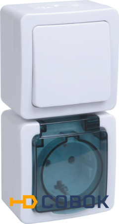 №180904IEK БВб-22-31-ГПБд блок «выкл 1кл + розетка 1м с з/к» о/у IP54 ГЕРМЕС PLUS (кл.бел./кр.дым)