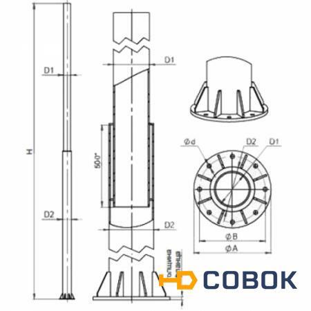 Опоры освещения силовые фланцевые ОС(ф) Опора освещения силовая с воздушной подводкой кабеля ОСф характеристики Обозначение D1 D2 A/B d/шт. H h кг ОС(ф)-0,4-8,0 168 219 420/360 25/8 8000 2000 301 ОС(ф)-0,4-8,5 168 219 420/360 25/8 8500 2000 322 ОС(ф)-0,4-9,0 168 219 420/360 25/8 9000 2000 335 ОС(ф)-0,4-10,0 168 219 420/360 25/8 10000 2000 368 ОС(ф)-0,7-8,0 219 273 420/372 25/12 8000 2000 400 ОС(ф)-0,7-8,5 219 273 420/372 25/12 8500 2000 426 ОС(ф)-0,7-9,0 219 273 420/372 25/12 9000 2000 452 ОС(ф)-0,7-10 219 273 420/372 25/12 10000 2000 549 ОС(ф)-1,0-9,0 219 325 500/420 30/8 9000 2500 577 ОС(ф)-1,3-9,0 273 325 500/420 30/8 9000 2500 620 ОС(ф)-1,5-9,0 273 325 500/420 30/8 9000 2500 642 ОС(ф)-1,8-9,0 325 426 600/552 33/12 9000 2500 876 D1 - верхний диаметр D2- нижний диаметр A/B - размер опорного фланца H - высота d/шт. диаметр отверсий и кол-во Опоры освещения силовые фланцевые ОС(ф) предназначены для освещения улиц и магистралей, парков, скверов, аллей, бульваров, набережных, территории автозаправочных станций и коттеджных поселков. Типы применяемых кронштейнов Декоративные парковые, консольные и прожекторные кронштейны, для опор серии ОС имеют исполнение с обечайкой. Подводка кабеля: воздушная, подземная (под заказ с ревизионным окном, усиленное исполнение). Установка опор освещения ОСФ Для фланцевых силовых опор ОСф предусмотрена установка с использованием фундаментного блока. Фланцевое соединение является идеальным решением при организации освещения автомагистралей, где нередко возникает потребность замены опор, поврежденных при столкновении с автомобилями. В тех случаях, когда прямой монтаж опор невозможен, используются фундаментные консоли. Опоры устанавливаются на фланец закладной детали фундамента. Кронштейн фиксируется в верхней части опоры при помощи болтов. Покрытие Горячее цинкование по ГОСТ 9.307-89, порошковое полимерное или лакокрасочное покрытия в цвета RAL.