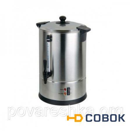 Кипятильник RWB 015D-16B заливного типа (автономный) изготовлен из матовой нержавеющей стали.Объём (вместимость воды от днища до максимального уровня) - 14,6л.Водонагреватель оснащён пластиковым краном для розлива, скрытым ТЭНом, 2 системами защиты от перегрева, сигнальными индикаторами нагрева и поддержания в горячем состоянии, шкалой уровня воды, выключателем \"вкл./выкл.\", фиксирующейся крышкой из нержавеющей стали 304.Пластиковые ручки корпуса и крышки не нагреваются.Защитное кольцо основания позволяет передвигать кипятильник по поверхности прилавка без царапин.Цельный корпус имеет двойные стенки; толщина стенки: внутренней - 0,5мм (нержавеющая сталь 304), внешней - 0,4мм (нержавеющая сталь 201).Благодаря двойным стенкам внешняя поверхность аппарата не разогревается до обжигающей температуры.